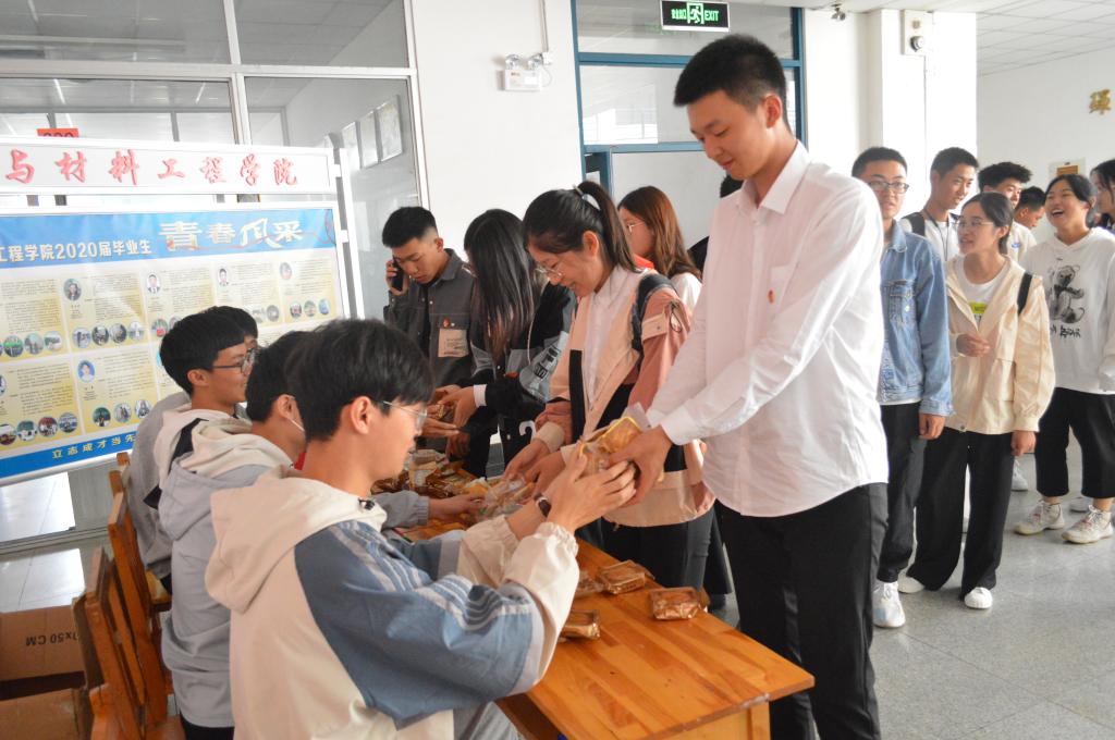活动伊始,20级新生在辅导员倪翠、苗毅老师的带领下参观学院,倪翠老师为新生介绍学院团组织建设、20届学院就业考研情况、优秀毕业生、优秀团干部、优秀党员风采、学院党建文化等,引导20级学生向青春榜样学习,向优秀党员先锋学习,自觉培育和践行社会主义核心价值观,厚植爱国情、树立强国志,投身报国行。参观结束后,学院为2020级新生学生发放月饼,让学生在接受爱国主义教育的同时,感受到学院在节日期间对学生的关怀。
