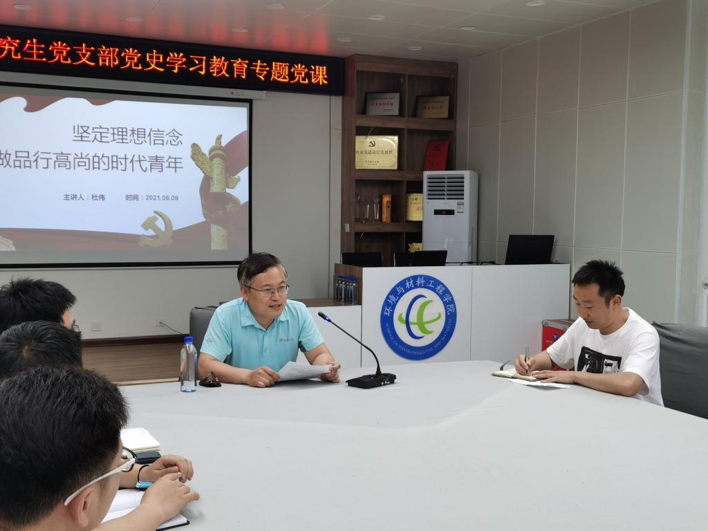 杜伟院长为研究生党支部作“坚定理想信念,做品行高尚的时代青年”专题党课。学院研究生党支部全体党员参加此次会议。