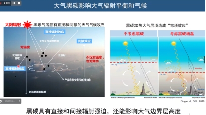 图1. 大气黑碳光吸收对辐射平衡和气候的影响