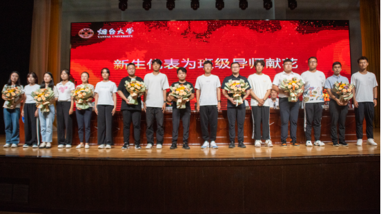 典礼上,新生代表向班级导师献花,表达崇敬、感恩之情。
