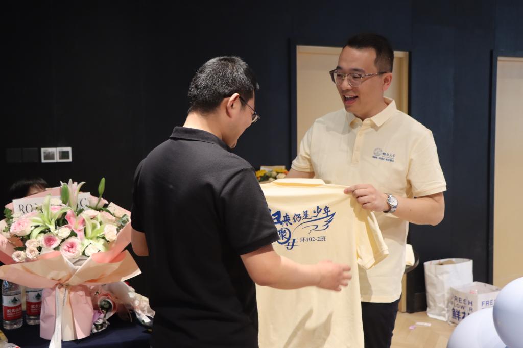 校友代表烟台玥远企业管理咨询有限公司总经理、环材102-2班班长贾洪杰深情回忆了大学生活的点点滴滴,以及毕业之后与母校、老师、校友之间的密切联系。祝愿母校发展蒸蒸日上,祝福老师幸福安康,祝愿同学和学弟学妹再创辉煌。