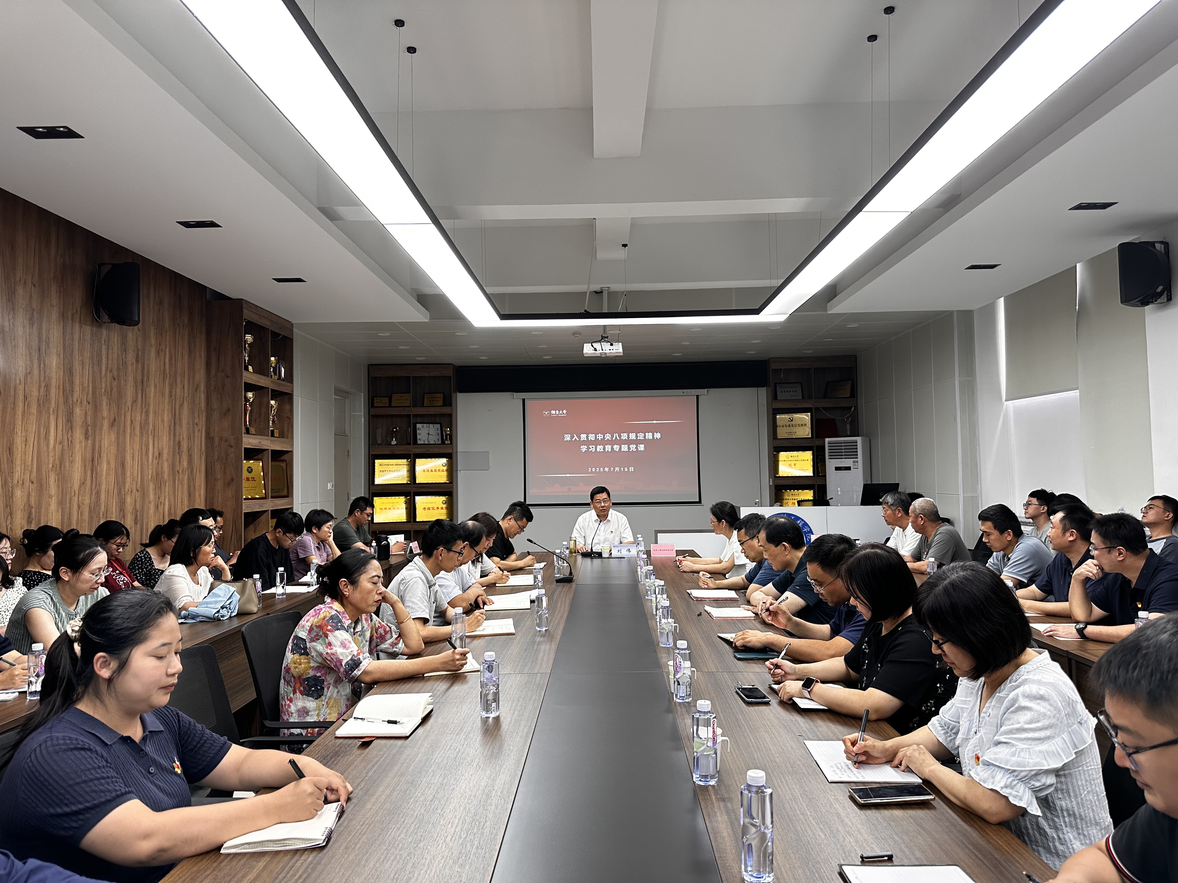 刘伟以“学思践悟中央八项规定精神,以作风建设新成效服务保障学校事业高质量发展”为题,围绕“清醒认识当前作风建设面临的形势与挑战”“深刻领会中央八项规定精神的核心要义”“常态长效深化落实中央八项规定精神”等三个方面进行了深入解读。刘伟指出,党的十八大以来,在以习近平同志为核心的党中央站在巩固党的执政地位、完成党的使命任务的战略高度,从制定实施中央八项规定开局破题,自上而下、以上率下,以彻底的自我革命精神纠治“四风”,以小切口带动作风大转变解决了新形势下作风建设抓什么、怎么抓的问题,党风政风焕然一新,社风民风持续向好,八项规定成为长期有效的铁规矩硬杠杠,成为管党治党的“金色名片”。但当前“四风”问题依然严峻复杂,顶风违纪时有发生,隐形变异潜滋暗长,风腐交织日益凸显,形式主义官僚主义顽固多发,党员、干部必须时刻保持警醒,从反面典型案例汲取深刻教训,做到慎独、慎微、慎初,不断强化纪律意识,做到知敬畏、存戒惧、守底线。