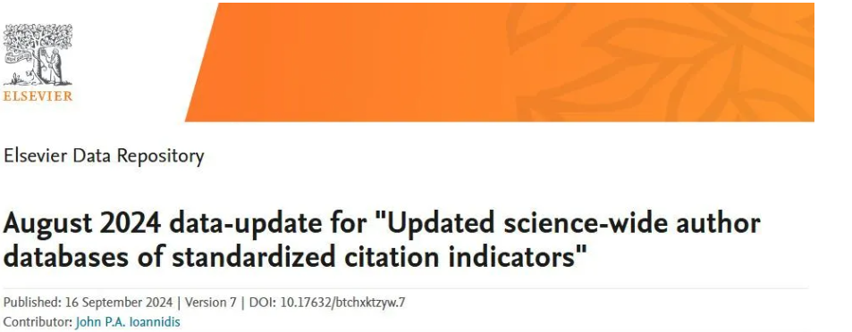 2024年9月16日,美国斯坦福大学和爱思唯尔数据库(Elsevier Data Repository)发布了第七版“全球前2%顶尖科学家榜单”(Stanford University Top 2% Scientists List)。该榜单分为“年度科学影响力(Single Year)排行榜”和“终身科学影响力(Career-long)排行榜”,前者聚焦于科学家在2023年度的学术成就,后者则关注科学家整个学术生涯迄今的影响力。海外影视