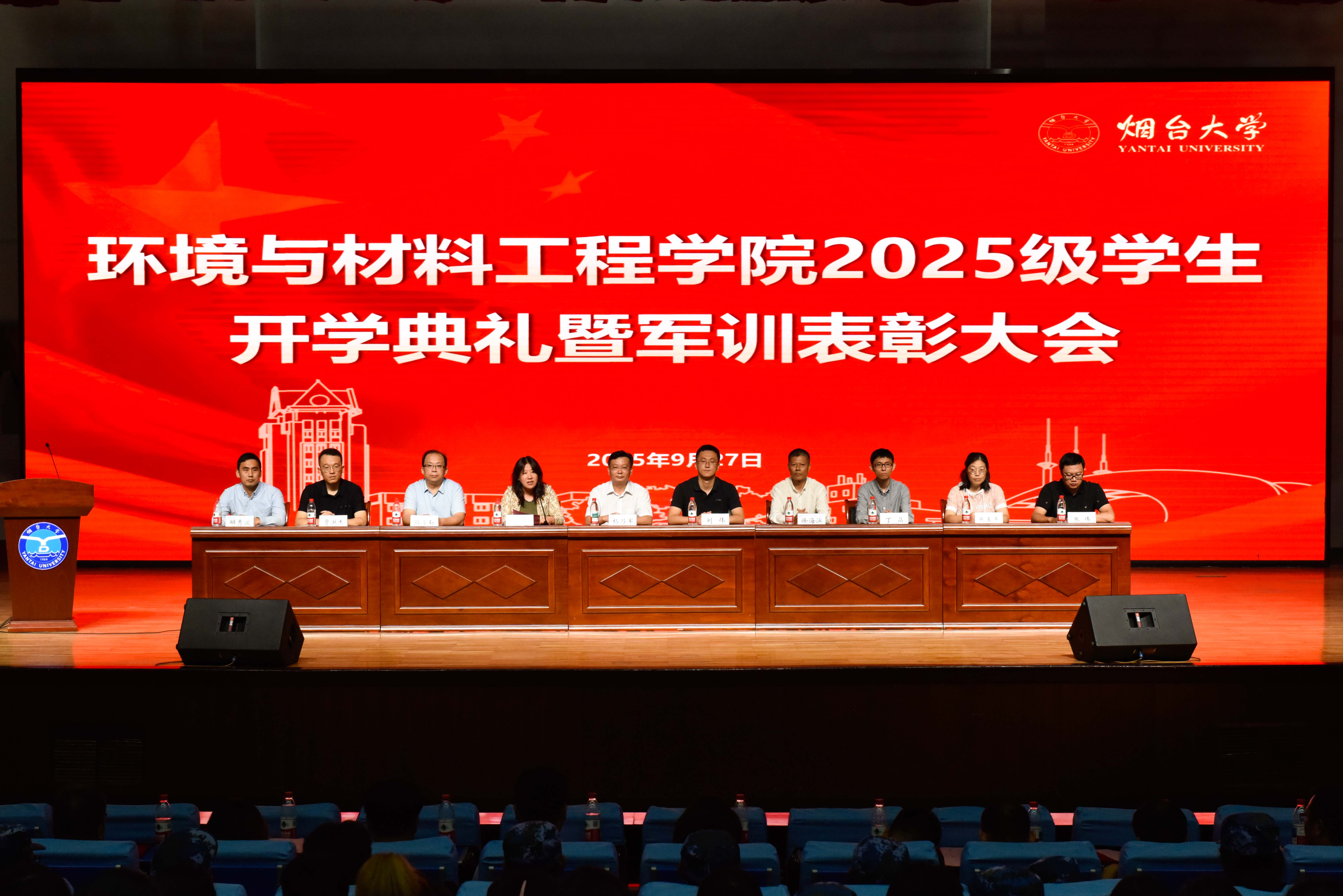 2025级新生开学典礼暨军训表彰大会在弘毅厅隆重举行。学院党委书记杨乃军,党委副书记、院长刘伟,党委副书记陈颖,副处级组织员徐海滨,副院长孙学勤,副院长丁晶,校友代表贾洪杰,院长助理解秀波,环境系主任张伟,材料系主任张玉平,教师代表侯传信,学院党政办公室主任苏跃华, 2025级班级导师,全体辅导员,2025级班级导师助理以及2025级新生参加典礼。大会由学院党委副书记陈颖主持。