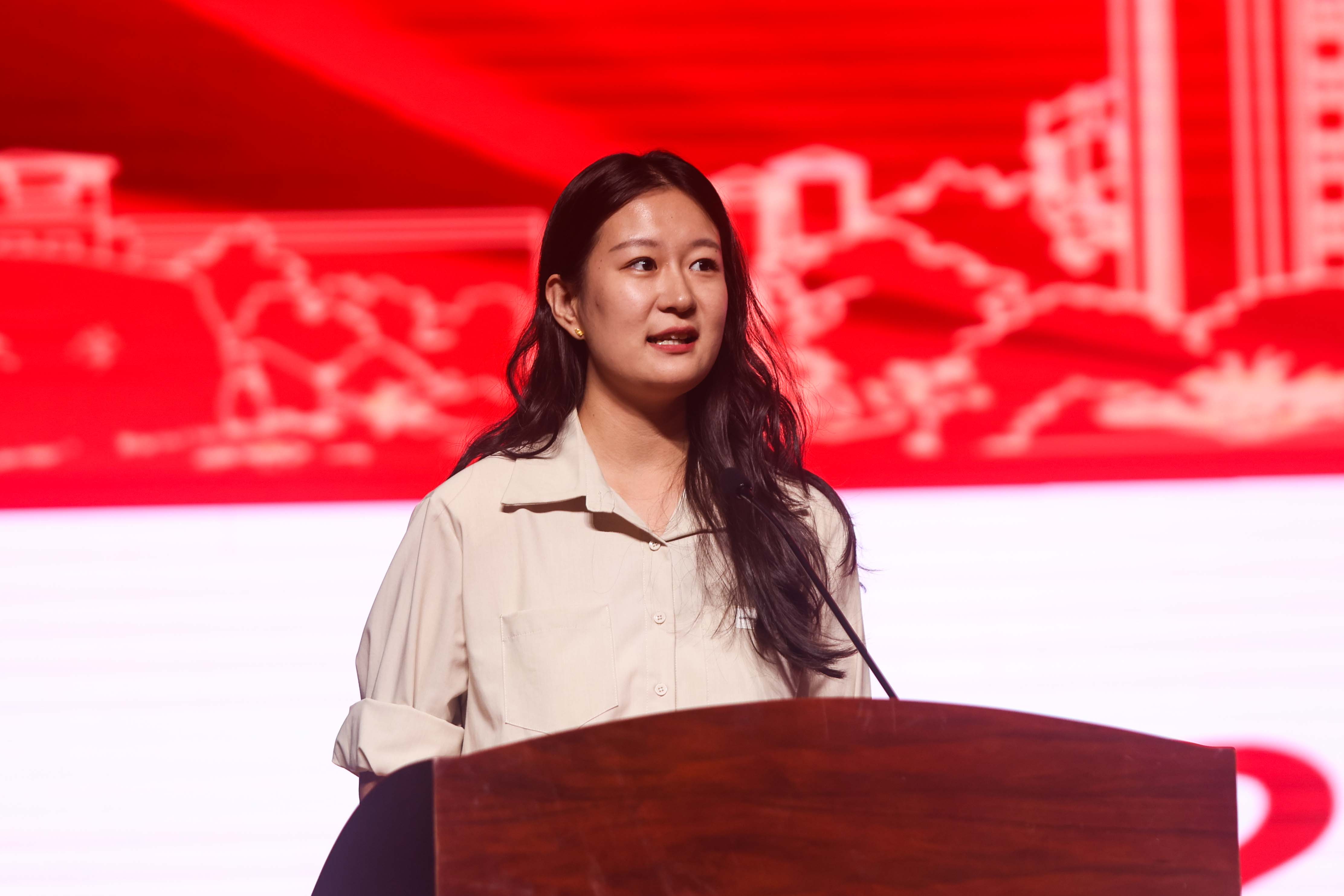 2025级本科生新生代表苏星睿畅想青山绿水的未来蓝图,进而将对专业的理解,与烟台的城市特色和国家发展的时代使命紧密相连。号召同学们把个人的成长融入专业的发展,把青春的梦想写入国家的需要,肩负起时代赋予环材人的责任。