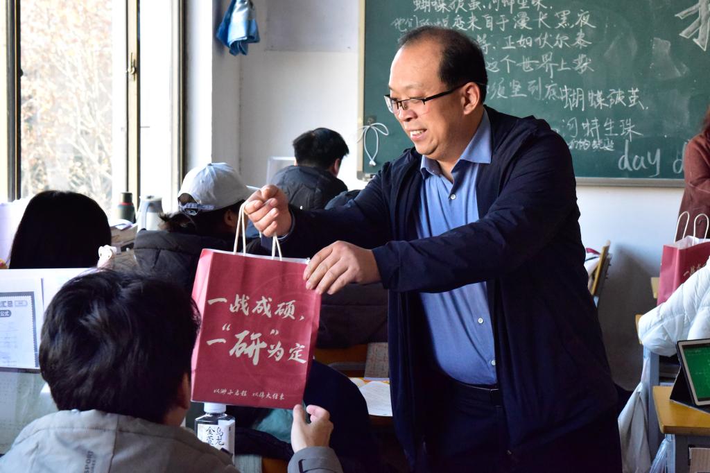 精心组织了考研学子慰问活动。学院院长刘伟、党委副书记陈颖、副院长孙学勤、丁晶、毕业班导师和学院辅导员齐聚一堂,为正奋力拼搏的莘莘学子送上最诚挚的问候与最坚定的支持,让寒冬备考路暖意融融。