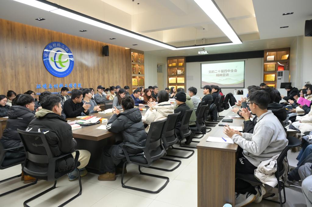 针对青年学生成长成才,杨乃军结合高校育人使命和环材学院学科特色,深刻剖析了全会精神与青年发展的内在联系。他强调,青年学生是国家的未来和民族的希望,学生骨干作为青年群体中的中坚力量,更要主动扛起时代责任,将个人理想融入国家发展大局,在专业学习中锤炼本领,在服务同学中践行使命,在科技创新中勇挑重担。宣讲既有理论高度,又有贴合学生实际的实践温度,字里行间饱含着对青年学子的殷切期望,让在场学生深受启发、倍感振奋。