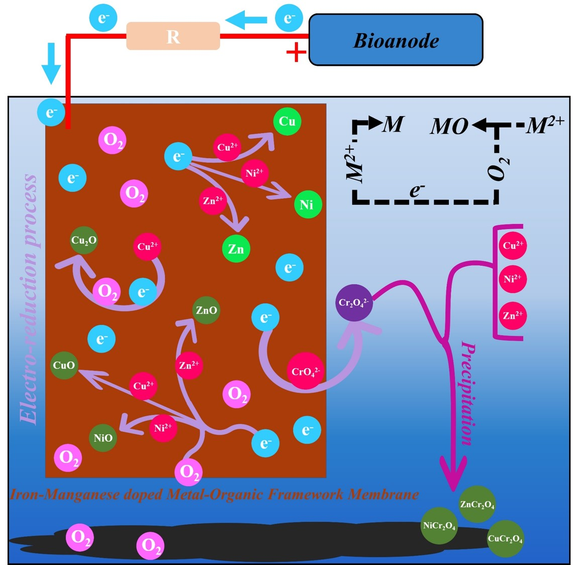 通过使用MFC-EC耦合型BES系统对于废水中的氰化物和贵金属离子同时进行处理。这种新型的BES系统通过促使溶液中的氯离子变为次氯酸根离子实现氰化物的氧化降解,在此过程中释放的电子可以与贵金属离子结合,实现贵金属离子的还原回收。