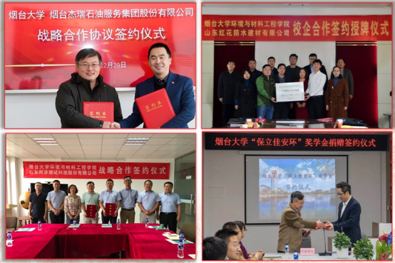 学院坚持“立足烟台、融入烟台、服务烟台”,为区域经济社会发展提供强有力的支持。学院牵头与杰瑞环保联合申报的山东省重点研发计划重大创新工程项目获批,与烟台宝源净化合作,申报“山东省生态环境净化材料与装备技术创新中心”。