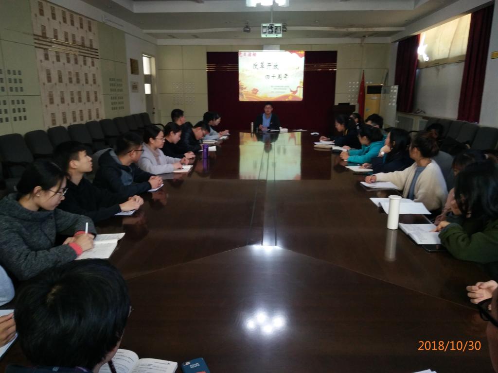 10月30日中午,材料专业学生党支部在学院会议室召开以“庆祝改革开放四十周年”为主题的党日活动,支部全体党员参加学习。
