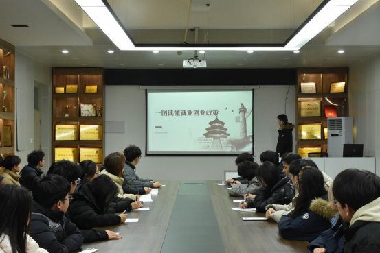 在学院337会议室成功举办了“一图读懂就业创业政策”专场解读会,2021级辅导员苗毅老师指导此次会议,吸引了近百名有就业创业意向的学生到场参与。