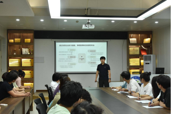 学院2021级辅导员苗毅老师为即将毕业的学生们重点解读了国家“百万就业见习岗位募集计划”的核心内容,详细说明政策为在校生提供的岗位保障、权益支持与发展机遇。苗毅强调,暑期实习是职场“预演”与就业“试金石”,鼓励同学们充分借助政策红利,将实习作为明晰职业方向、积累行业经验、提升就业竞争力的关键抓手。
