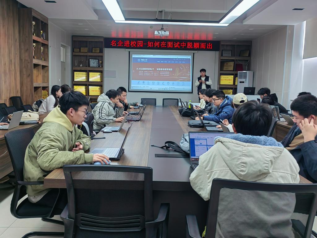 面向2025届毕业生举办“名企进校园——如何在面试中脱颖而出”专题宣讲会。本次活动由2021级辅导员苗毅主讲,通过系统讲解、实例分析与现场互动,助力学生增强求职竞争力。