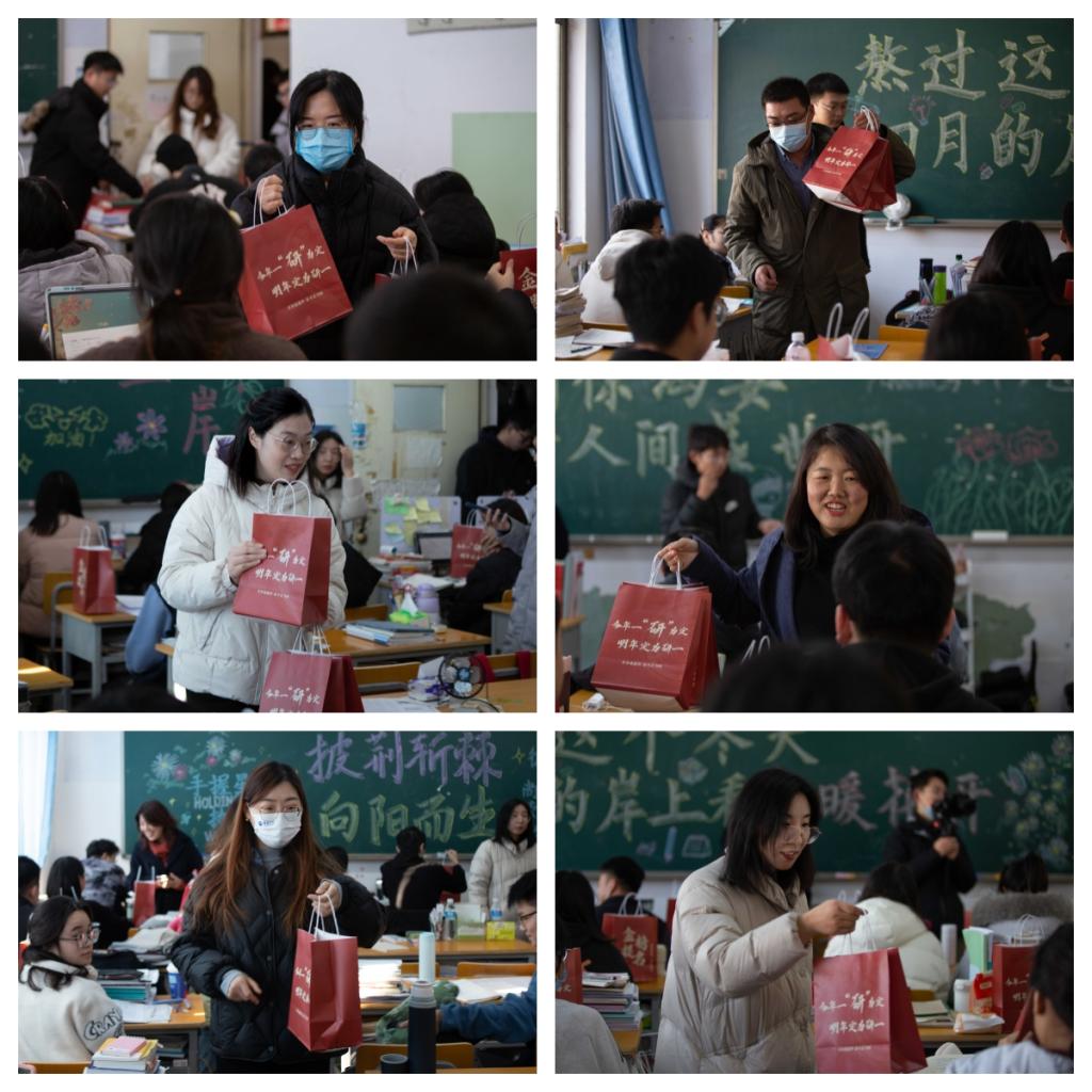 “漫漫考研路,你们用自律赴约征途,用刻苦磨砺迎接战场的号角,心之所向,素履以往,研途坎坷,终化坦途。愿你们不改初心,坚持到底。下一站,上岸!”慰问现场温馨而热烈,一件件贴心的礼物,一句句真切的话语,让考研学子深深感受到学院的爱与温暖。同学们纷纷表示深受鼓舞,将迎难而上,全力以赴,以优异的成绩回报家长和学校。
