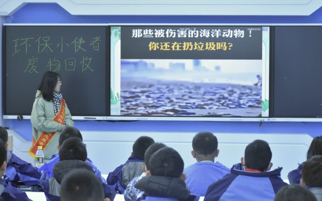 活动期间志愿者们为小学生们上了一堂废物回收环保知识小课堂,耐心且有趣地讲解环保知识,孩子们认真、积极地聆听志愿者的讲解,眼里绽放智慧的光芒。志愿者热情、温柔、耐心地带领小同学亲自动手利用废物制作实用且美观的小物品,增强了同学们的环保意识与动手能力,以实际行动发挥环保使者的榜样示范引领作用。