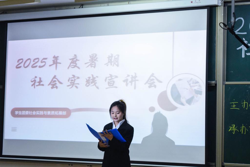 组织于综合楼422召开2025年暑期社会实践动员宣讲会。学院辅导员倪翠、冷科翰出席会议,2024级全体本科生参加。