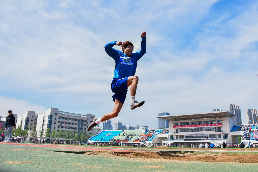 跑道上,健儿如离弦之箭,疾风掠影;跳高场上,身姿似飞燕凌空,轻盈矫健。每一次冲刺,都是速度与激情的碰撞,每一次腾跃,都是力量与柔美的交响。铅球场上,一掷千钧,划破长空;沙坑之中,纵身飞跃,丈量梦想。加油声如鼓点,为速度丈量热情,喝彩声似琴弦,为高度谱写激昂,青春从不缺少主角,而你们的热爱,是赛场最璀璨的追光灯。